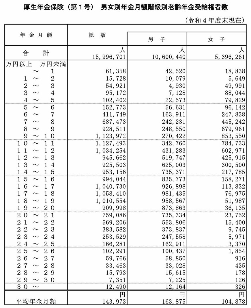 厚生労働省年金局の「令和4年度 厚生年金保険・国民年金事業の概況」によると、厚生年金の月額階級別の受給者数は下記の結果でした。