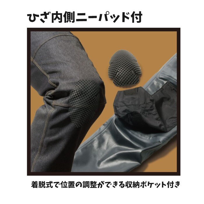 腰のストレッチニットで動きやすく、膝立体裁断などこだわりも。細部までワークマンらしい機能性が施された商品です。