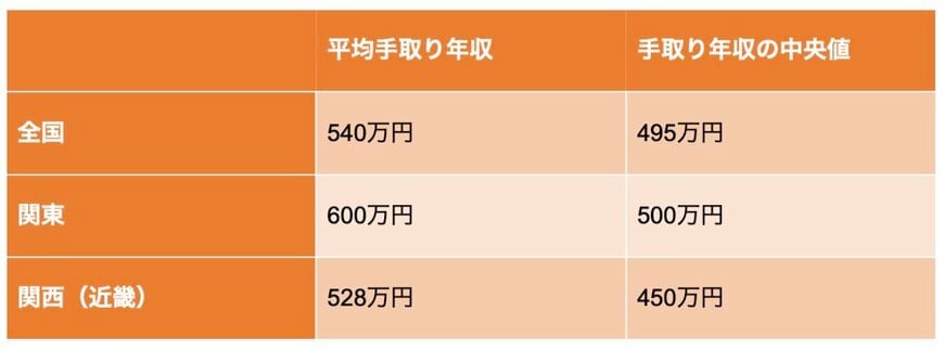 1. 関西の平均手取り年収と中央値はいくら?関東とも比較してみよう