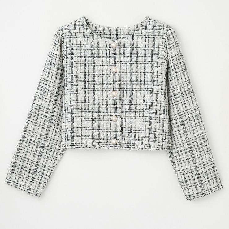 2. しまむらの「ショート丈ジャケット」は、オフホワイトとブラックの2色展開! おしゃれに着こなすことができるアイテムです