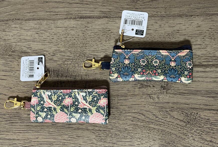 1. セリアでモリスデザインの「コインケース」を発見しました! フック付きなのでキーホルダーのように使えます