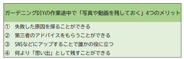7.1 ガーデニングDIYの作業途中で「写真や動画を残しておく」4つのメリット