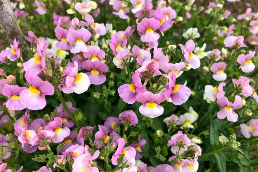 ネメシアは春らしいピンクやパープルを選ぶと、エリカに合わせやすくなります。エリカの草丈が高い場合は、メインの後方に植えましょう。