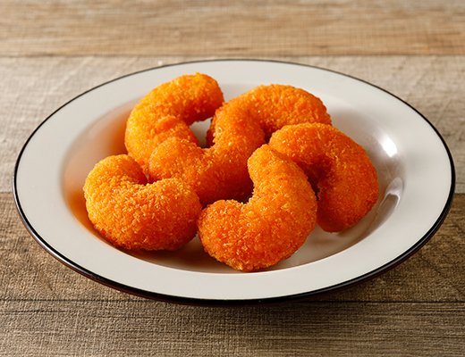 「まるでエビ!こんにゃく粉と大豆たんぱくで作った代替エビのポップコーンシュリンプ。」