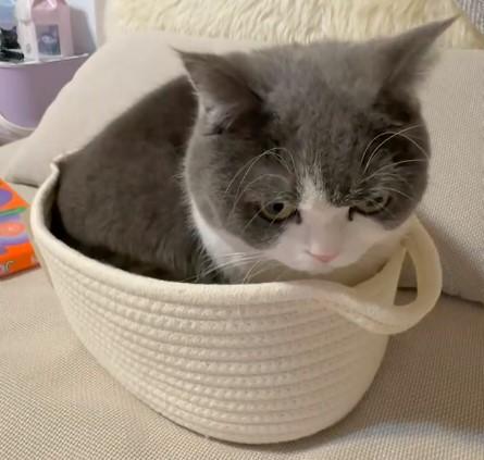 カゴに「ジャストフィット」するおもちちゃんの姿は、Xを通して大勢の心をわしづかみにしたようです。