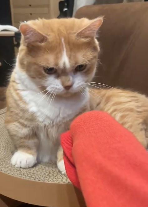 飼い主さんの「袖」を嗅ぎ、突如かわいいリアクションをする猫ちゃんがX(旧Twitter)で注目を集めています。