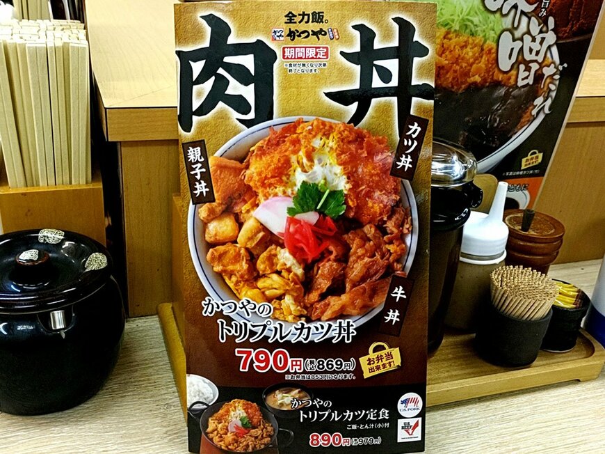 1. 【かつや】期間限定のトリプルカツ定食を注文