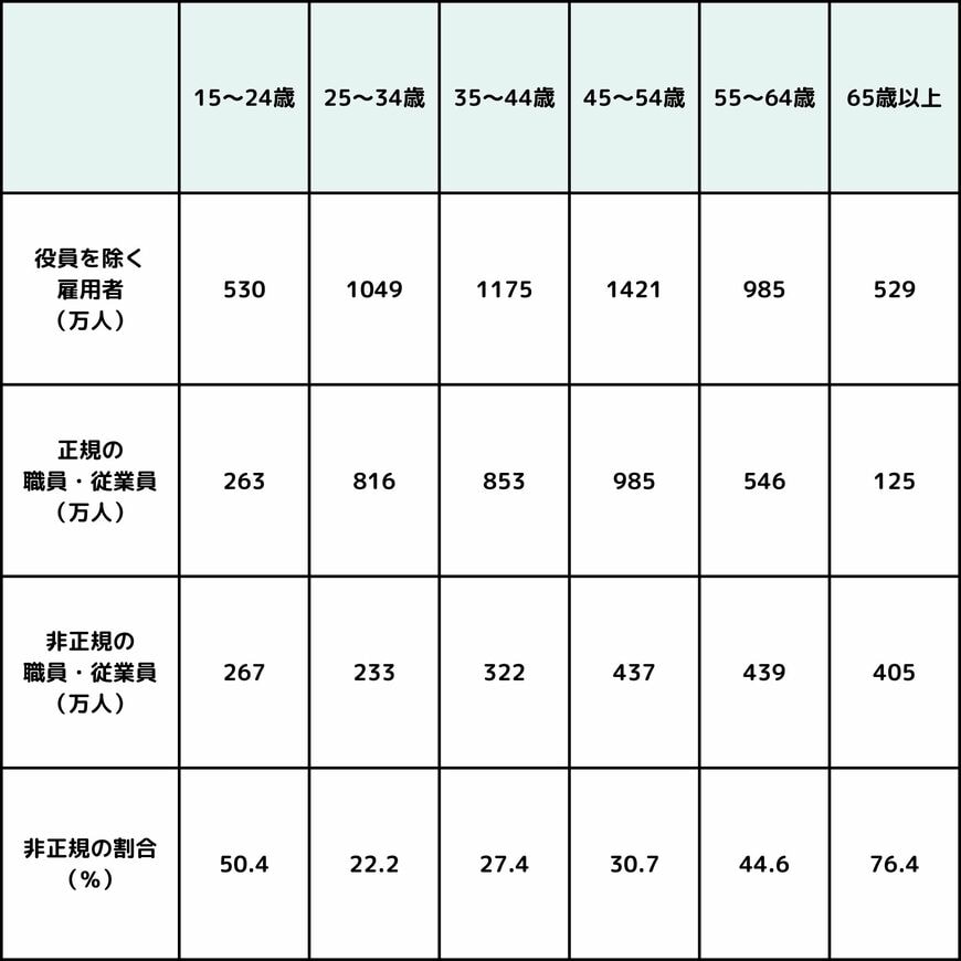 40~50歳代は、住宅ローンの返済や子どもの教育費などの支出が増えやすいとされる年代です。社内においても会社を引っ張る存在として活躍する世代であるにもかかわらず、非正規の割合が高いのです。