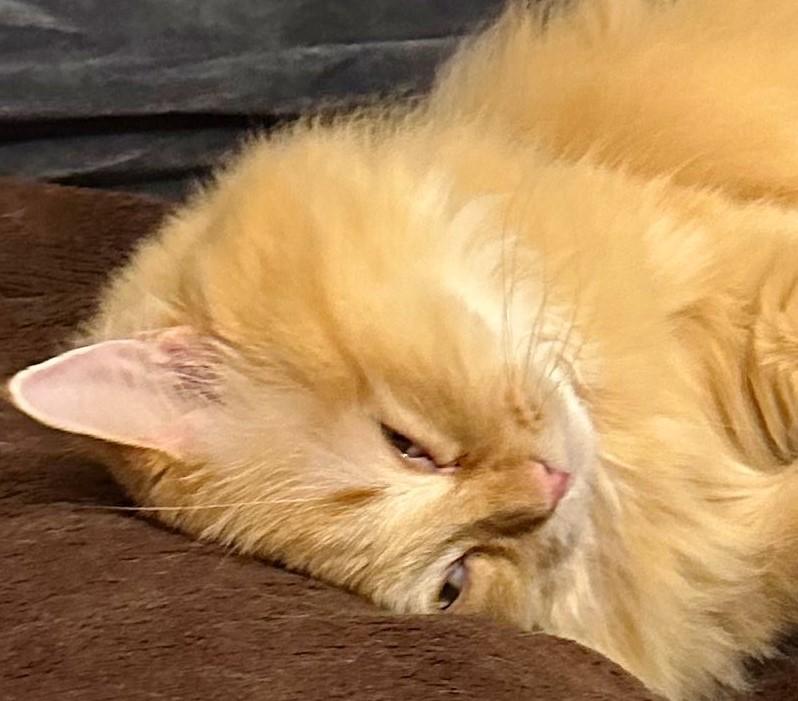 そこに写っているのは、茶色の毛布に横たわる一匹の猫ちゃん。名前はエマちゃんといいます。