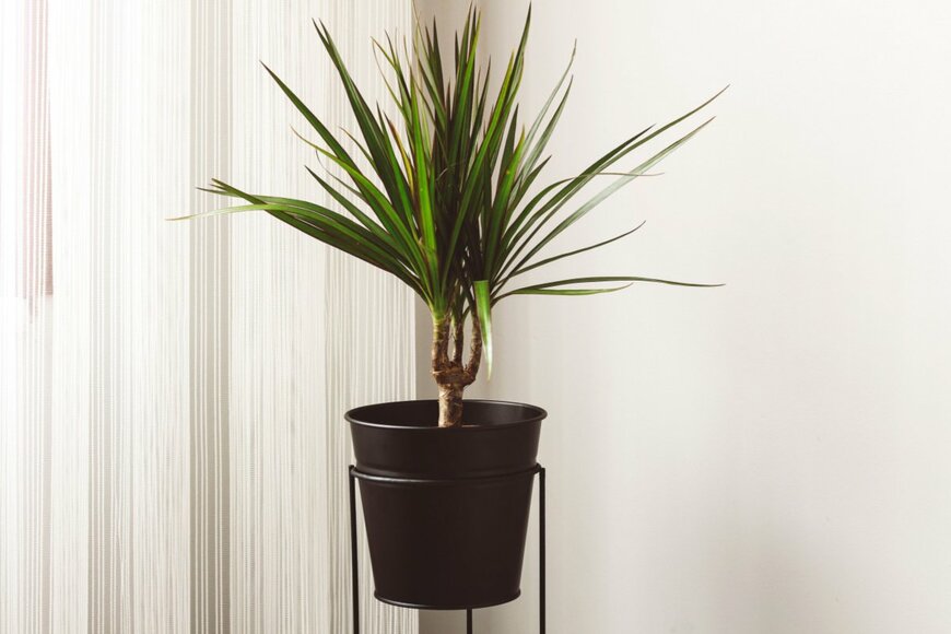 細長い葉がしなやかに伸びて、スタイリッシュな樹形が美しいドラセナ。葉色は濃い緑のほか赤や黄色を帯びた緑や斑入りなど色彩豊富で、品種が多いのもうれしいところです。