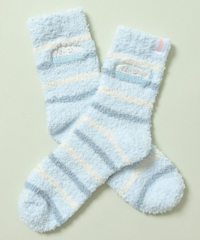 おうち時間も可愛く。大人気サンリオキャラクターのルームソックスが登場しました。ポップなボーダー×キュートなキャラ刺繍が新鮮なデザイン。ソックスは程よい長さのベーシックなクルー丈タイプです。また、ふわふわで肌触りのよいモール素材を採用しています。大好きなキャラと一緒なら、おうち時間もさらに楽しくなりそうですね。