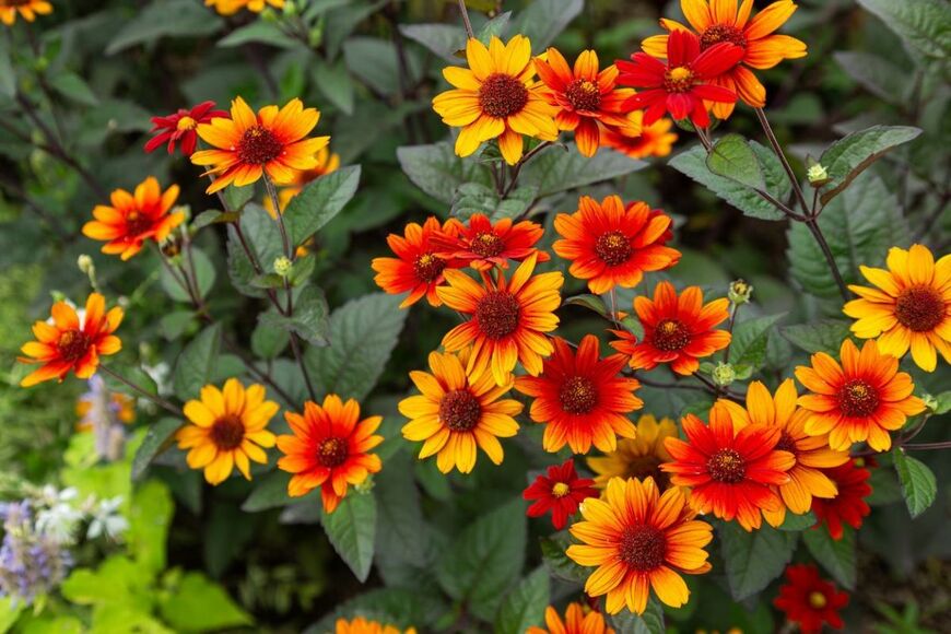 イエローやオレンジのビタミンカラーがオシャレなヘリオプシス。「姫ヒマワリ」とも呼ばれる宿根草で、6~10月まで開花が続きます。特に八重咲きの品種は花の形が美しく、切り花にもオススメです。