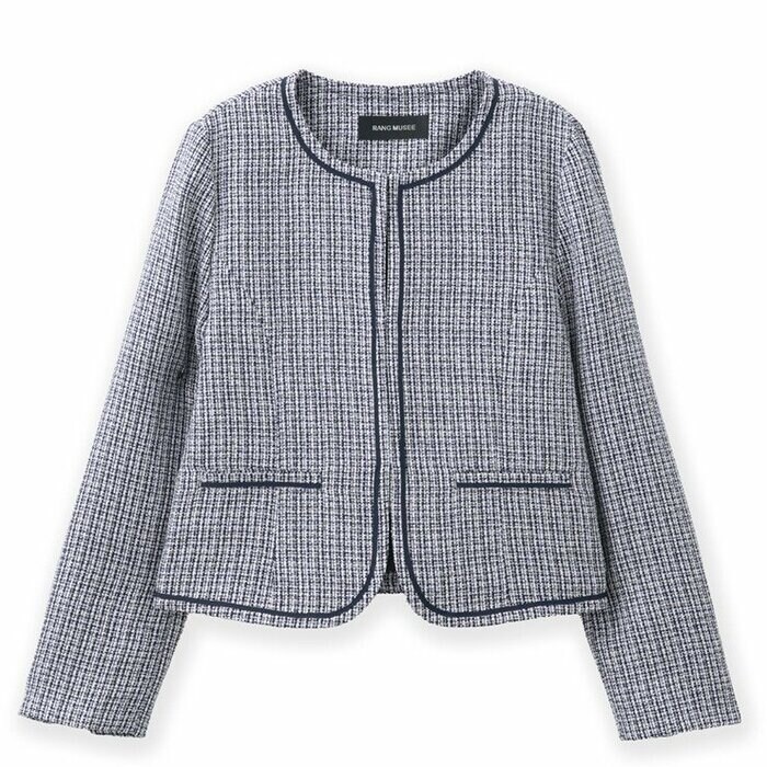 1着あると便利な、定番の上品ジャケットです。裏地がおしゃれなネイビーカラーになっており、シャツやブラウスの上に羽織るだけでフォーマルな印象を与えられます。