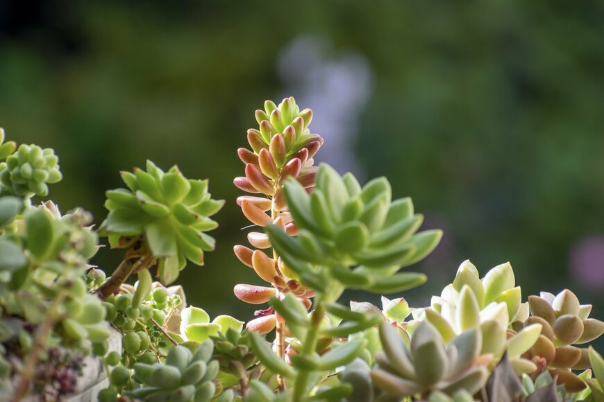 まるで小さなブドウのようにもみえる肉厚な葉。セダムは寒さと乾燥に強く、冬の屋外でも元気に育てることができます。