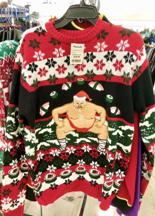 投稿主の山口さんは、アメリカでの日々を投稿し、たびたび注目を集めています。以前は、アメリカ定番の「Ugly Christmas Sweater Day(みんなでダサいクリスマスセーターを着て出社する日)」に着用した、白髪の力士がサンタ帽をかぶって四股を踏むセーターが話題に。