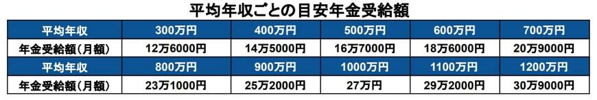 平均年収 年金受給額の目安(額面)
