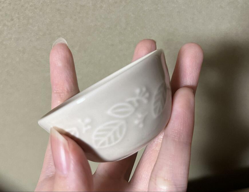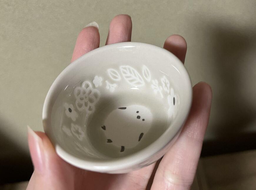 お皿の側面部分にも草花や木の実など、シマエナガの好物がレリーフされています。110円(税込)のアイテムでありながら、どこから見てもかわいらしいです。
