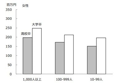 女性は10~99人で2億1000万円なのに対し、1000人以上では2億9000万円となりました。