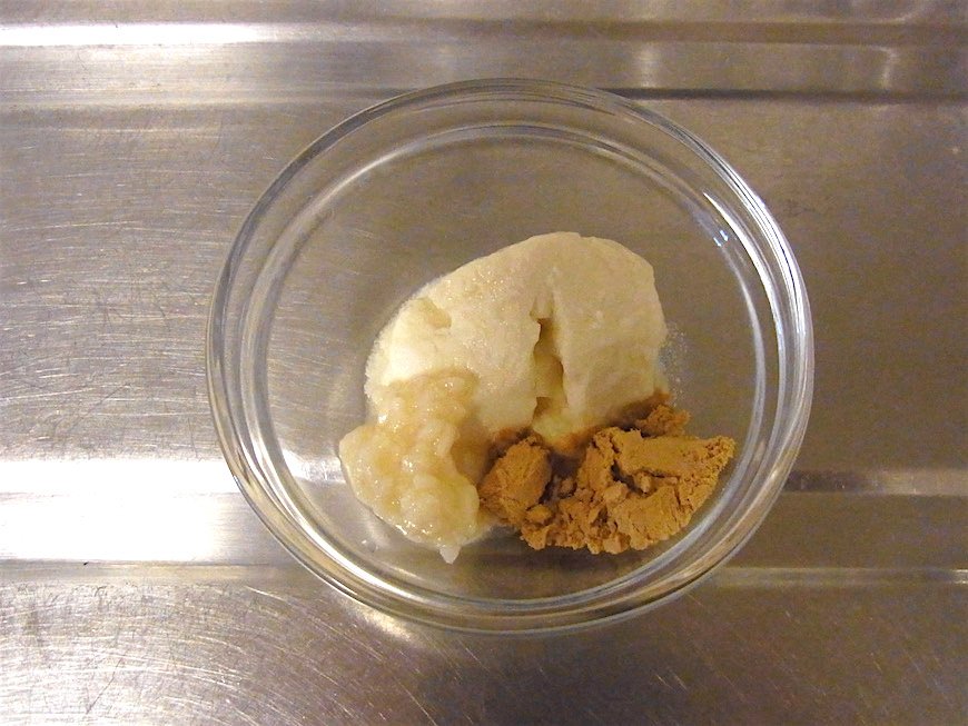 さて、とりあえずこれで晩酌のメインができました。夏なら冷たいままでもいいのですが、冬なら食べる前に電子レンジで加熱しましょう。食べる時はそのままオリーブオイルと黒胡椒やドライハーブをかけるだけでもおいしいのですが、せっかくなので乳酸菌たっぷりのディップも添えてみます。