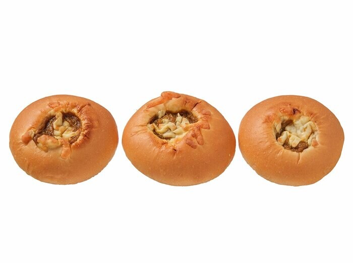 「カレーフィリングとチーズをパン生地にのせて焼き上げました。」