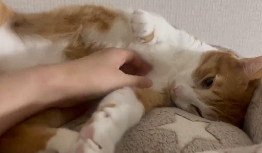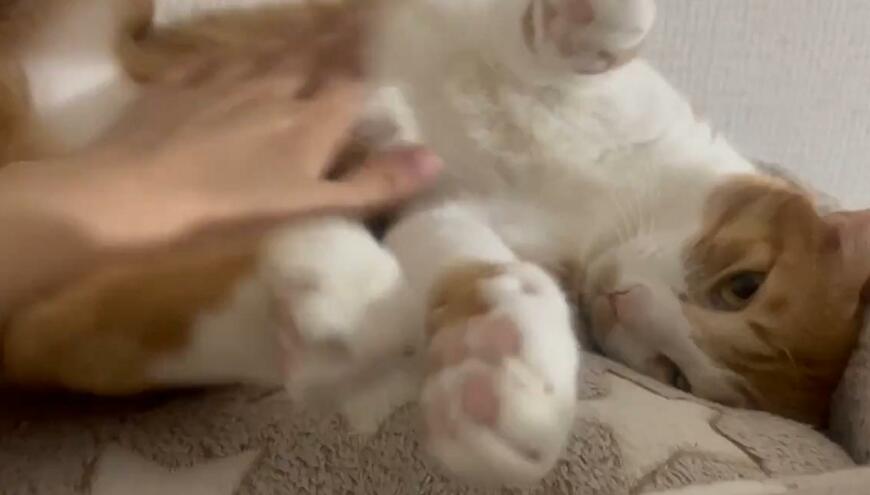「お腹なでなで大好き」というコメントとともに投稿されたのは、一本の動画でした。Xでたくさんの注目を浴びているのは、元野良猫のきなこくんです。