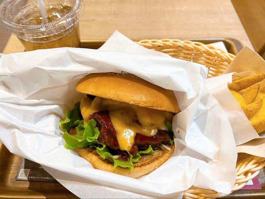 さっそくいただいてみると、甘辛ソースの深みのある味わいに目を見開きます。コクがあり、これだけでも濃厚。ピリッとした辛さが後から感じられ、ソースの本格的な味わいにさすがフレッシュネスバーガー!と言いたくなります。