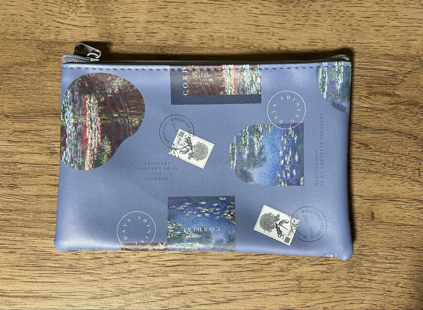 こちらはモネデザインのポーチです。水色を基調としている、上品なポーチです。