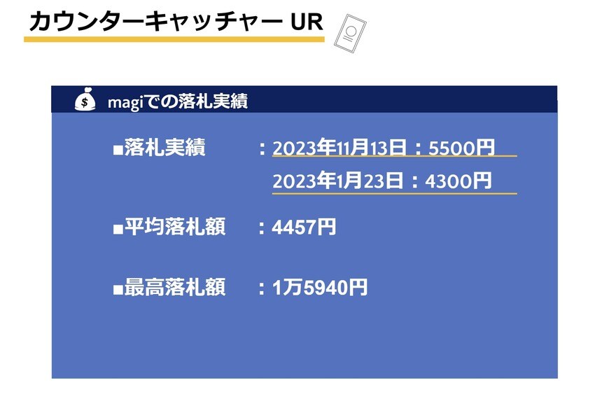 2024年1月までのカード単品の最高落札額は「カウンターキャッチャー UR 060/050:1万5940円」です。