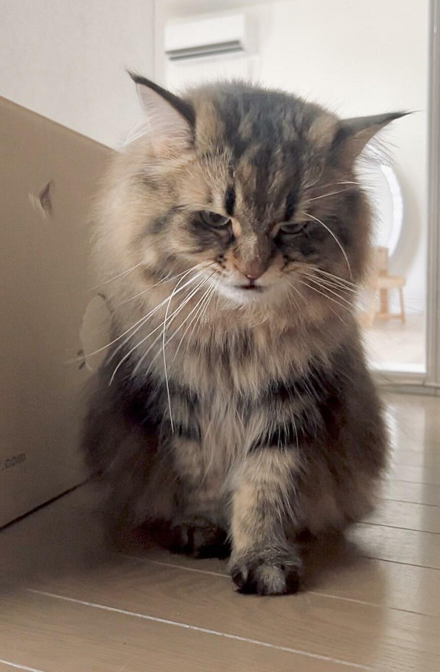 「おもちゃで遊ぶ時間が少なかった時の」というコメントとともに投稿されたのは一枚の写真でした。話題になっているのは、表情豊かな猫の男の子「ヤマネコ」くんです。