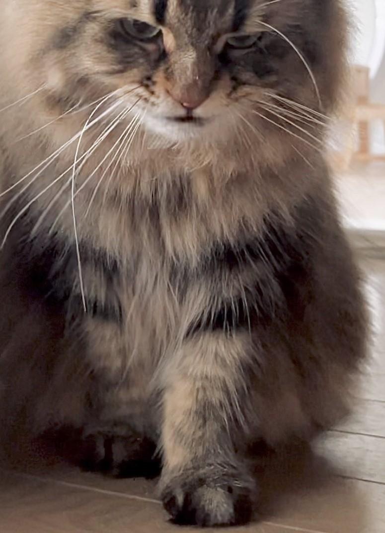 ビビリで甘えん坊な性格です。ちょっとでも知らない音や声がすると、ビクビクして隠れる子です。