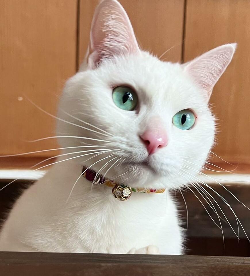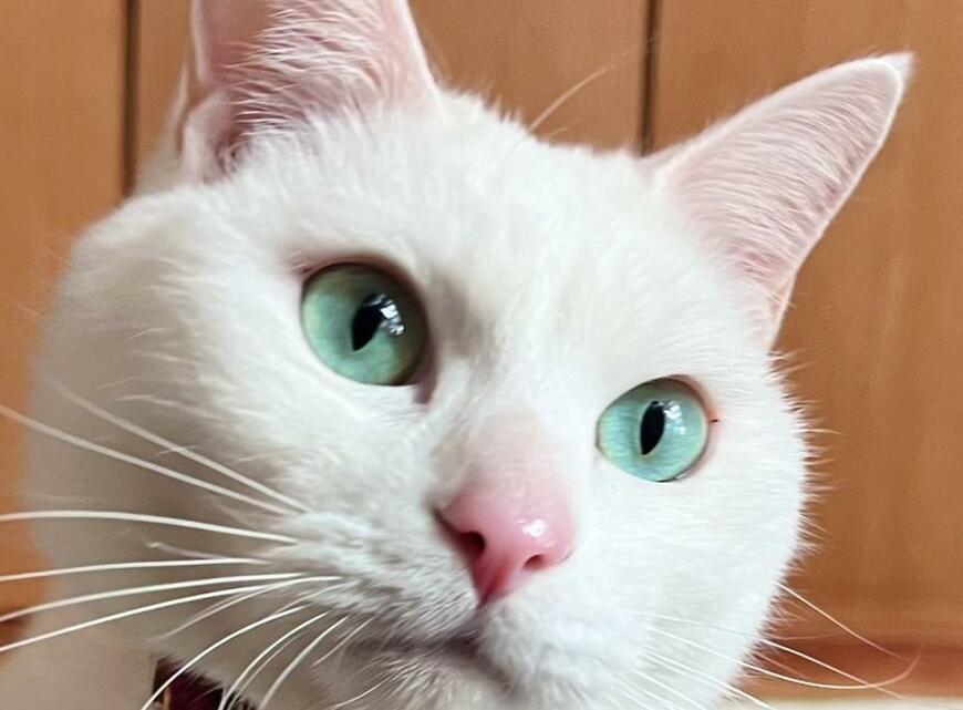 「おめめ、キレイだな……」「宝石のように美しい瞳」「つやつや鼻にふわふわ白毛、ミントグリーンの瞳。麗しい」と絶賛の声が続出。