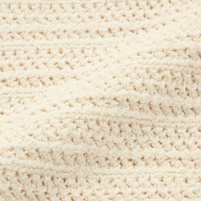 凹凸感を特徴とする「ブークレ」素材のアイテムです。ニット素材のアイテムですが、通気性が良いので、インナー次第では春まで着用することができそうです。