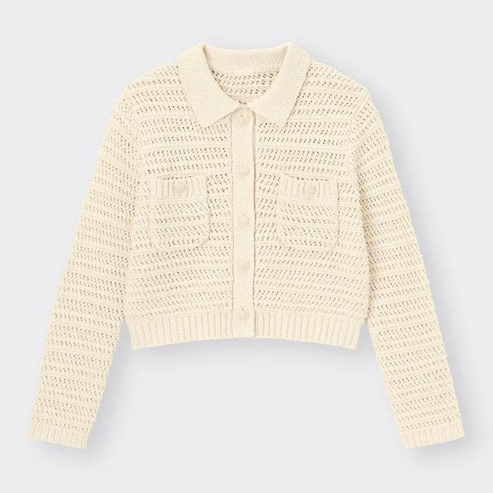 GUでは、春まで使えそうな新作アイテムの販売が始まっています。こちらの「ブークレニットジャケット」もその1つです。