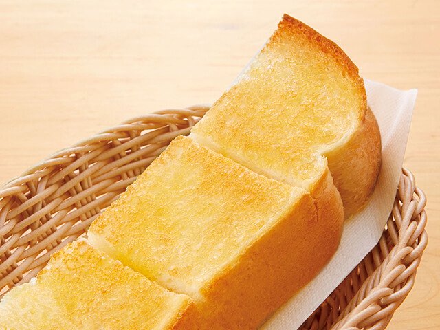 「山食パン(トースト)」または「ローブパン」の2種類から選べるモーニングのパン。厚切りでふんわり食感が特長の山食パンは、喫茶店モーニングの定番ですよね。