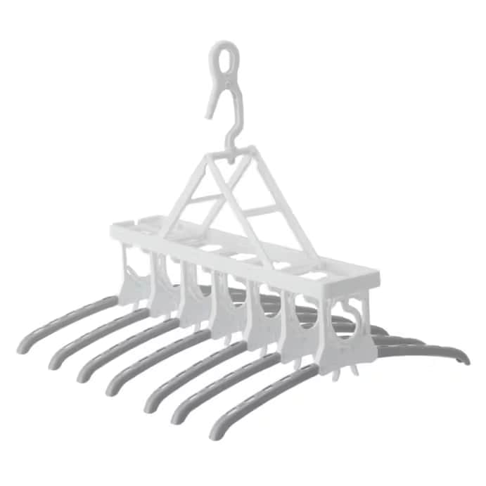ワンタッチで取り込める7連式ハンガー。折りたたみ可能なので、クルーネックから前開きシャツまで様々なタイプの衣類を簡単に干せます。