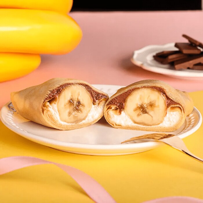 「もっちり食感のクレープ生地で、バナナ、チョコクリーム、ホイップクリームを包みました。濃厚なチョコクリームとホイップクリームの味わいが◎。」
