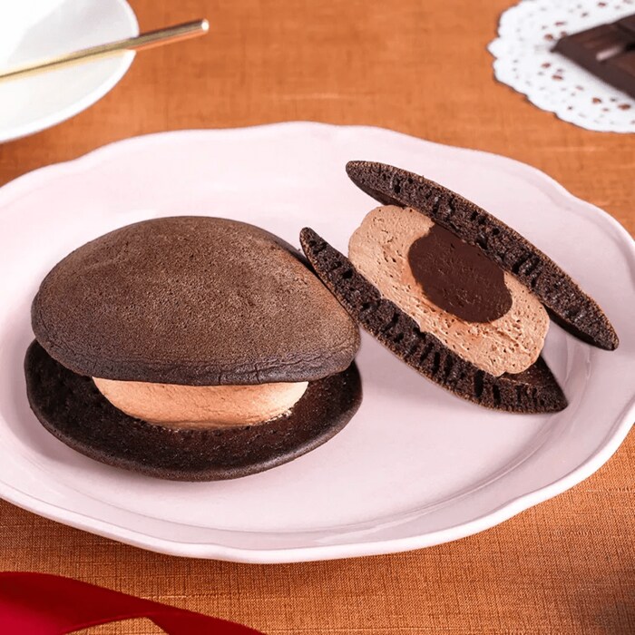 「チョコクリームとガナッシュをふんわりココア生地で挟んだ洋風どら焼。ビターなチョコクリームと濃厚なチョコガナッシュとの相性が◎。」