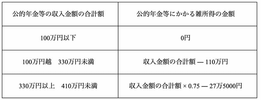 収入が公的年金のみの場合、雑所得の公的年金等控除を差し引き、他の控除できる金額(基礎控除や配偶者控除、社会保険料控除など)を差し引きし計算した後、住民税がかからず、他の世帯全員にも住民税がかからない場合、住民税非課税世帯となります。