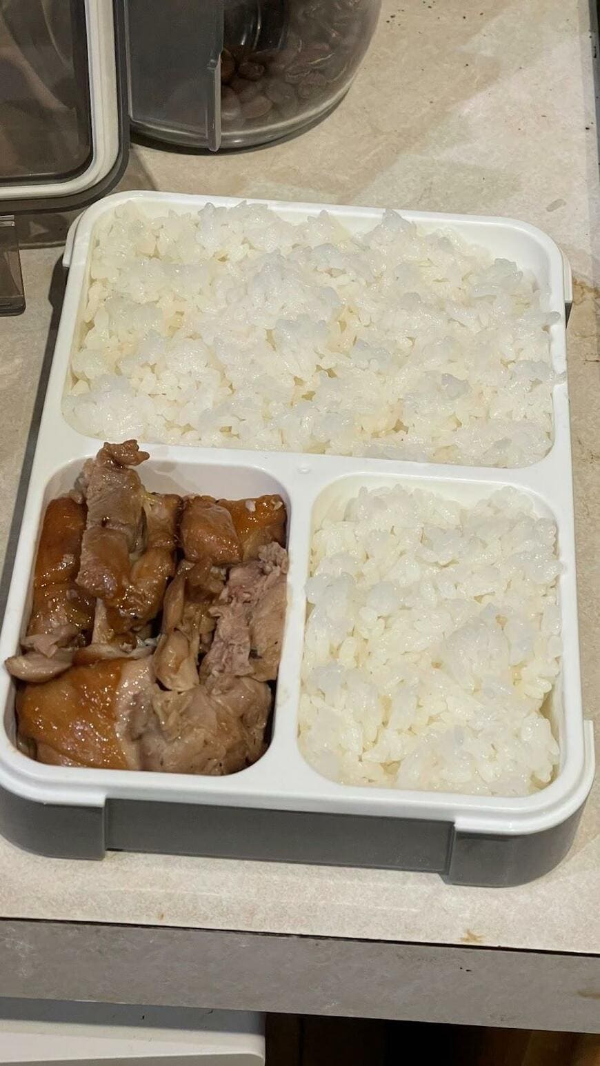 そこに収められていたのは、白ご飯と照り焼きチキンだけがぎゅうぎゅうに詰まったお弁当。本来おかずを入れるはずのスペースにまで白ご飯が詰められていて、大学生だという息子さんの「とにかくお腹いっぱい食べたい」という欲求が伝わってきますね。