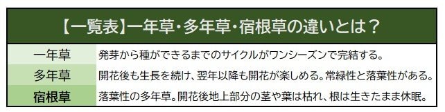 4.1 ご参考【豆知識一覧表】一年草・多年草・宿根草の違いとは?
