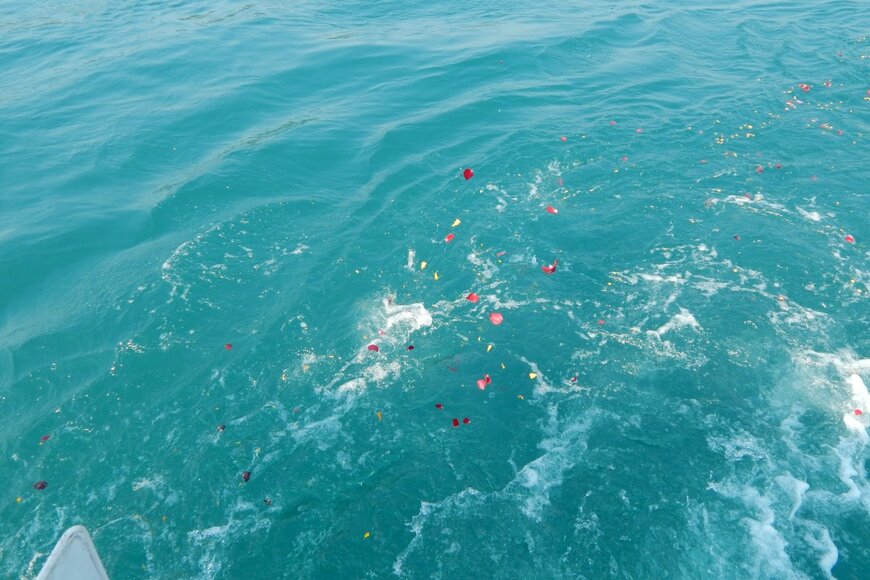 専門の散骨業者に依頼し、船をチャーターし、漁場に影響を与えない沖合まで船で行き、散骨します。また、散骨をする際には、遺骨を2mm以下のパウダー状にする必要があります。