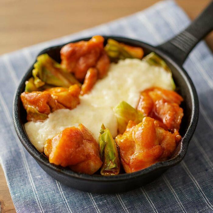甘辛い味付けができるタッカルビの素は、子どもから大人まで幅広く楽しめる商品です。濃いめの味付けのため、お肉や野菜を増やしたり、チーズを乗せて味を足したりしても美味しさを損ないません。