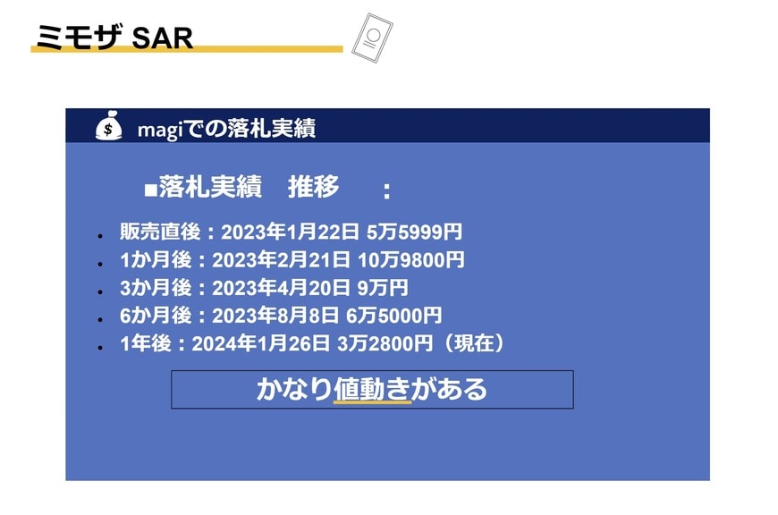 <販売直後~1年後の価格動向・推移>※magi落札実績