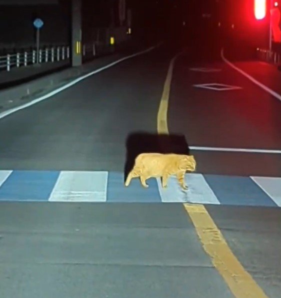 猫は車が近づく前(ライトが当たる前)からゆっくりと歩いていたといい、動画のように歩いていたのは「横断歩道を渡るときだけ」だったそうです。