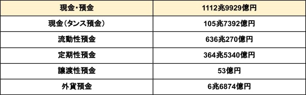 現金・預金:1112兆9929億円