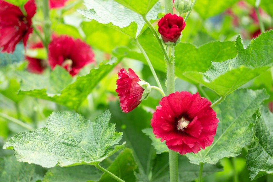アルセアはタチアオイやホリホックとも呼ばれる宿根草。草丈が高く、初夏のガーデンを華やかに彩ります。