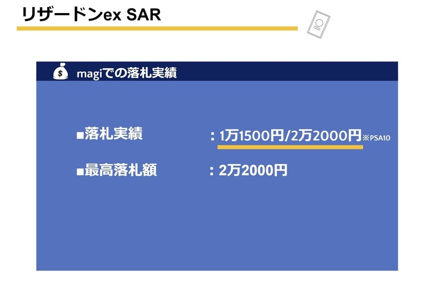 2024年1月までのカード単品の最高落札額は「【PSA10】リザードンex SAR 201/165:2万2000円」でした。PSA10であるために高額買取されています。