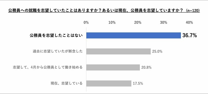 結果によると、学生の36.7%が「公務員を志望したことはない」と回答したことがわかりました。