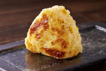 「バター風味のごはんに北海道産とうもろこしを混ぜ、チーズソースをかけて、こんがり焼いたおにぎりです。チーズソースには、ホワイトソースと粗挽き黒胡椒を入れることで、コクがありながらもピリッと感じられる味わいに仕立てました。」
