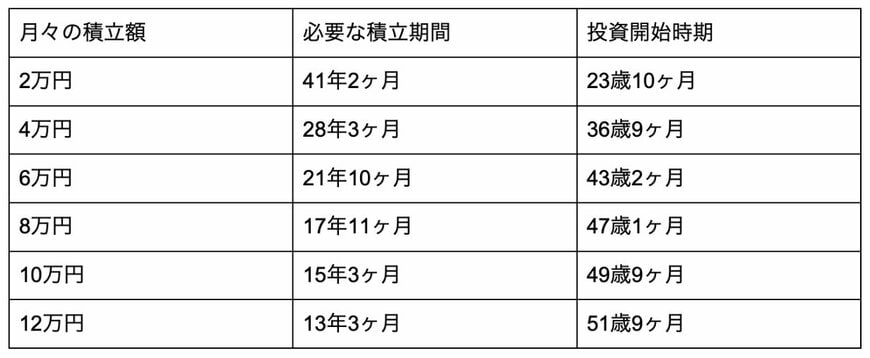 2. 積立金額を高くするのも投資期間を短縮するうえでは有効